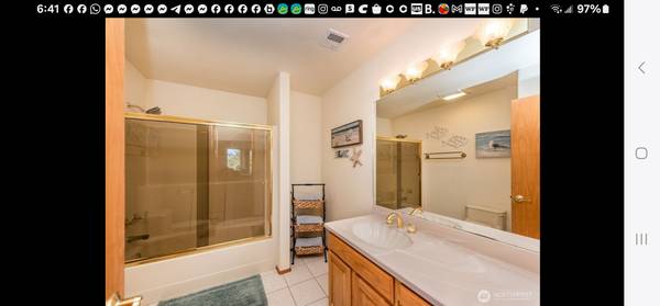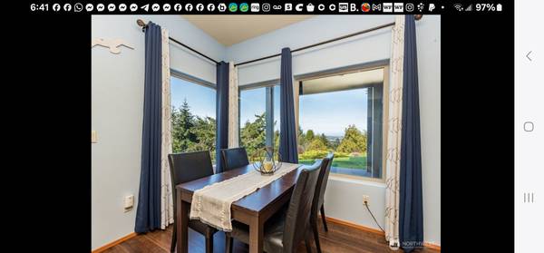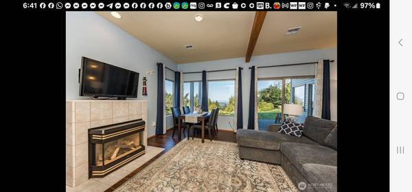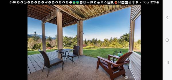 AVAILABLE NOV 1st 2025: Single Family Custom Home in Sequim, WA 98382. Home sits on 2 beautifully landscaped acres. We are renting out the beautiful fully furnished, daylight basement, with 9 foot ceilings and unobstructed views of the Strait of Juan de Fuca and the Olympic Mountains. All of which are visible from a wall of windows in the room. This space offers 1 bedroom with a Queen bed and a couch that makes into a bed. A covered deck and a porch swings. The private bath has a tub/shower. The cozy living room/dining room has a queen murphy bed, and a gas fireplace. There is a shared Washer and Dryer. The kitchen is stocked with pots, pans, and dishes, full size fridge, microwave electric range. There is also a fire pit you are welcome to enjoy up by the pond. The drive to downtown Sequim is only 7 minutes. There are outside lit up stairs down to the rental's private entrance.