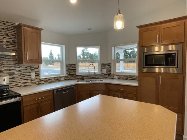 Beautiful 3-bedroom 2-bathroom single-story home with a 2-car attached garage and only 2 years old. Full-size stainless-steel appliances: refrigerator, range/oven, dishwasher, microwave, washer/dryer. Conveniently located downtown Sequim. Solid surface throughout, large covered front porch, master has a walk-in closet. Cats and small dogs okay. 55+ community. Background check required. Available immediately. $2500 a month. No smoking. First and last months deposit required.