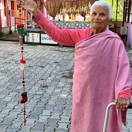 100% of proceeds goes to support homeless and abandoned elders in Nepal and Guatemala. The women you see holding up the door hangers in these photos are some of the residents we care for at the elder care home in Pharping, Nepal. Two of the women have no family to take care of them The third woman was put out into the street first by her stepson, and they by her own daughter -- her stepson cheated her out of her share of the family property, and her daughter was told by her in-laws to either abandon her mother or be put out into the streets with her. Your purchase not only supports The Disabled Service Center, but all the residents at the care home.