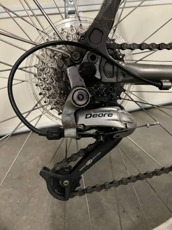 23" frame - perfect for the tall person in your life 24 speed, Shimano Deore derailleur Adjustable front fork suspension 700C tires Includes: fenders and toe clips (removable) $100 or best offer