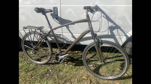 This has been a great bike for me, but I needed to downsize to a L frame. All Shimano drivetrain, 24 speed, Avid brakes, aluminum frame, classy Specialized styling. Brake/derailleur cables are long enough to accommodate different bar/stem styles. Currently it has the longer stem and the brown seat.