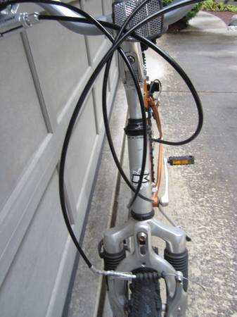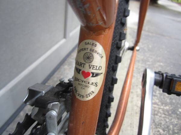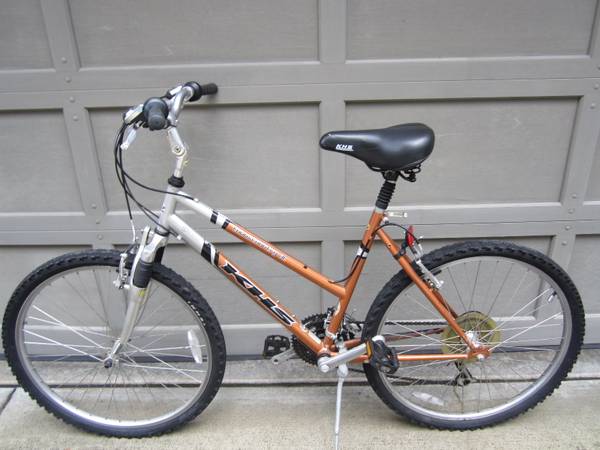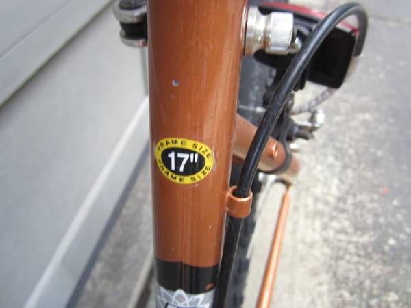 Ladies copper color bicycle KHS, Frame size 17 inches, aluminum including the owner's manual. The tires and brakes need attention and the bicycle saddle has a small tear. Please check the attached...