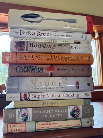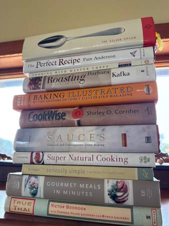 Large lot of cookbooks includes: The Silver Spoon The Perfect Recipe Cooking with MasterChefs Roasting a simple art Baking Illustrated Cookwise Sauces Super Natural Cooking Seriously Simple Gourmet...