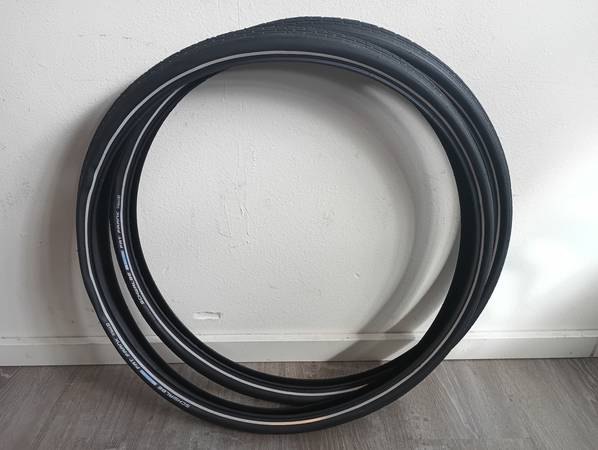 Take offs from a new bike. Light, fast and comfortable. Wire bead with reflective sidewall.