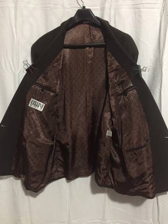 Double breasted lapel coats are a hot item now! Men's size 44. Length is 31". The photos do not show these coats well. Light varied in each photo. The color is actually somewhere in between.