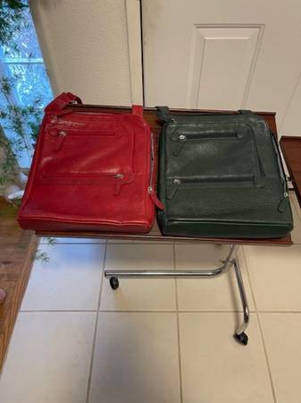 Levenger leather travel bags. Brand new, never used. Lots of pockets, adjustable strap. I have a red one and a green one. Perfect gift for your traveler. $45.00 each.