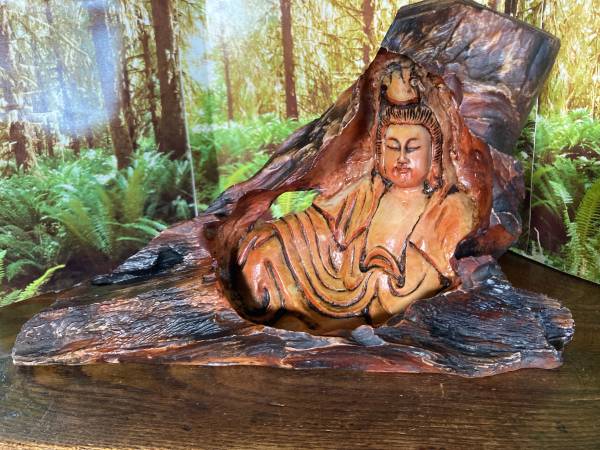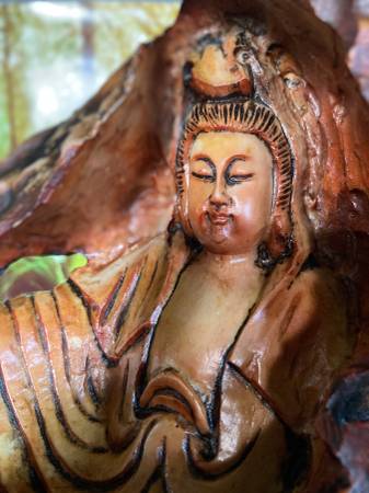Buddha projects his calming influence with this beautiful pose. Unmarked, so maker and country of origin unknown. This item has been polished, and cannot be wet or washed. It is very clean, and to maintain its beauty needs only a dusting. The statue itself is very sturdy, no damage, no odors. Statue weighs 1½ pounds.