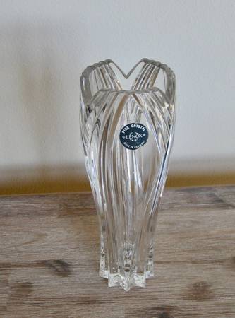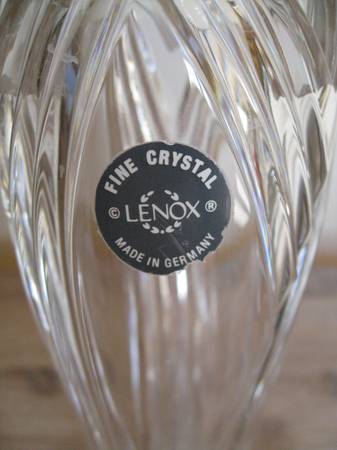 Lenox Crystal Bud / Rose Vase in organic fluted Art Deco style Overall good condition with one tiny dot chip, pictured, 7" in height, nice weighted bottom - good stability.