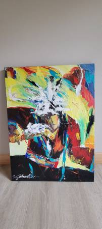 Original Acrylic Painting, "Dance Stick" by JoAnne Bird. Measures 30 × 40" Purchased in 2003 from Elk Horn Art and Gallery in Winter Park, Colorado. Vibrant, and Colorful! There is a lot of...