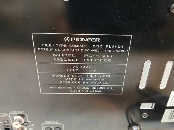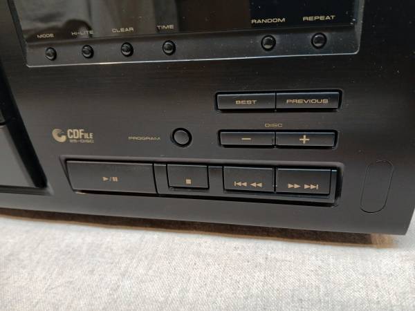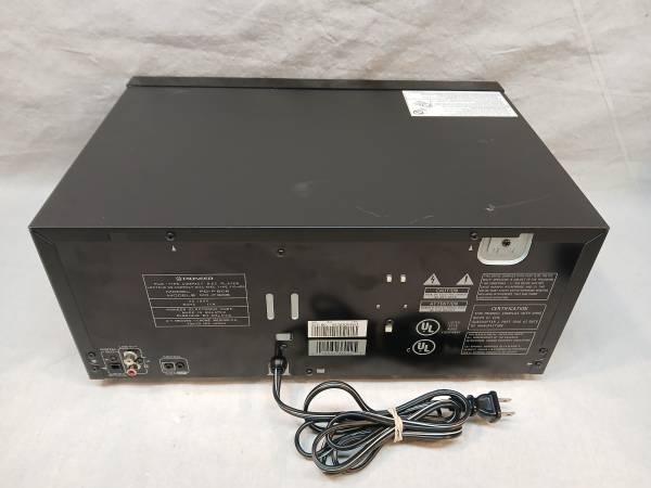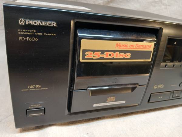 Tested, working as designed when new. Includes remote control. Holds 25 disc's. Excellent, with a blemish in the black finish on top (see pic) 50