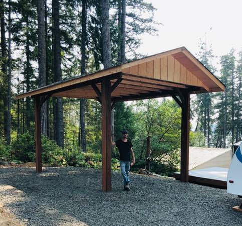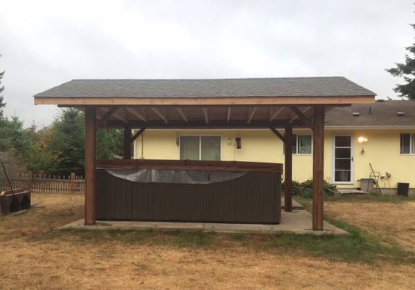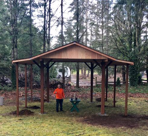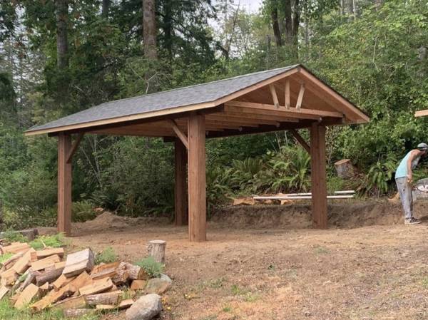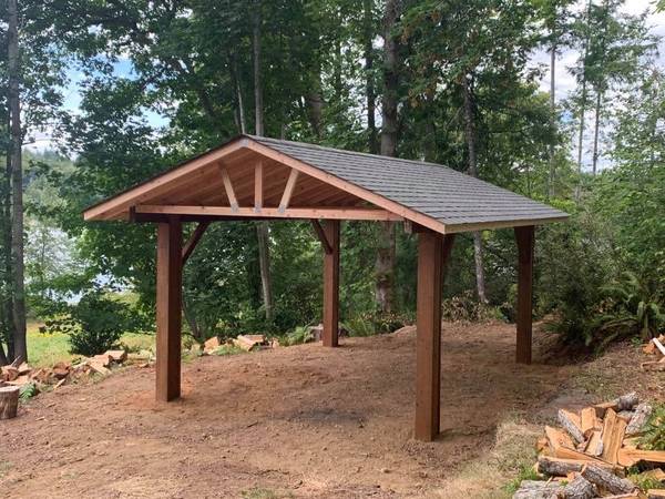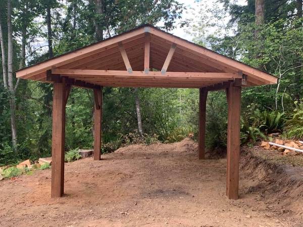 PRICES ARE REDUCED BY 10% FOR THE NEXT FEW MONTHS. Real wood carports built on your lot. 15' x 22' covered area with a 12x16 post spacing so no permit is required. (Ask about smaller sizes as well) Four 80 lb. sacks of concrete per post. The roofing is 30-year Pabco Premier Architectural composition shingles. The Washington State General Contractors registration is ARCADB*775DC. I have been in business for 13 years. My website is Arcadiabuildings.com. Kyle Skarra, the general manager of Builders First Source in Olympia WA and Art Tozier, the owner of Tozier's Ace Hardware in Shelton WA, will provide business references. These covers can also be used for patio shelters, picnic or barbecue covers. Contact Matthew at 360-490-7305 mobile and text. Please look at my website for shed prices and photos. Contact me for a Carport quote or information about other shelters,