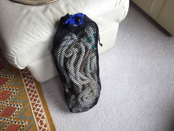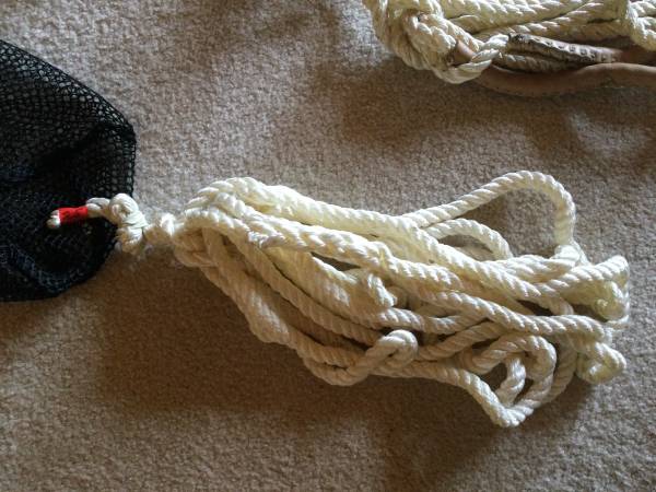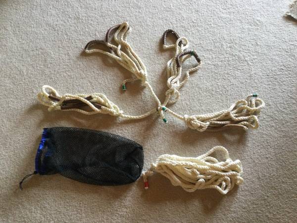 Bag of 5 nylon rope aircraft tie-downs or boat dock lines. Also handy to carry in RV or ATV.