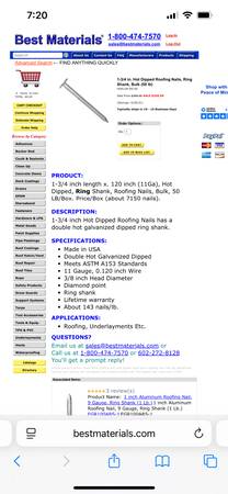 Stronghold Roofing nails Hot Galv 50# box Ring shank 3 x 135