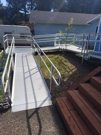 EZ-ACCESS Ramp System This ramp includes '28 of wheel chair ramp and 2 - 5'x'5 corner platforms with railing. Very good condition with no damage. This system is over $10k new and is for sale for...