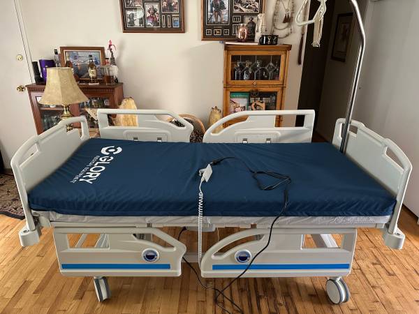 Point A (PAM-3H) Premium 3-Function Full Electric Hospital Bed for Home Use, 5.9" Memory Mattress Made in USA, LINAK Motor, Central Locking, 6" Casters. Hopeful stainless trapeze pole with triangle handle. Bought this year for $2900 w/trapeze add on plus tax. Used very little. Uncrated and ready for new home. $1700. Clean as a new bed and you don't have to put it together!