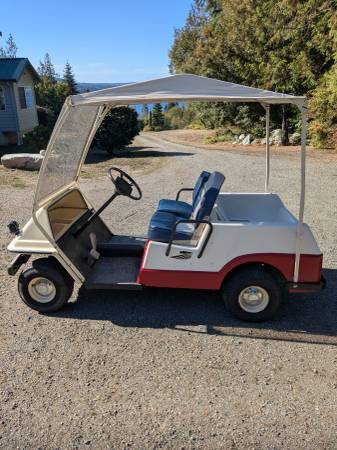 1980s Columbia Par Car. Two cycle gas engine, lots of new parts, no rust, runs and looks very good. $2500.00 firm, cash only