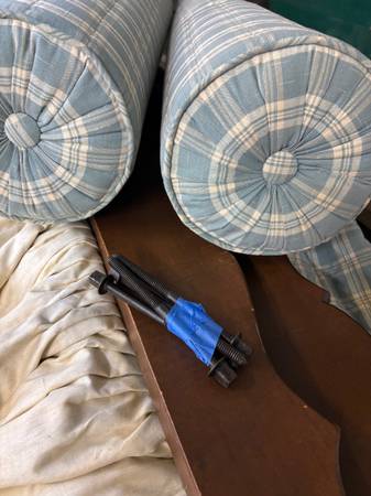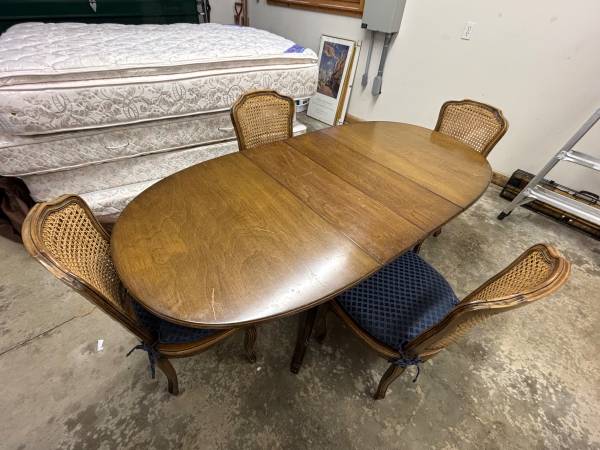 Kitchen table with two leaves and four matching chairs. Day bed which judging by the joinery is probably antique. The upholstery needs cleaning and the mattresses are not much to write home about.