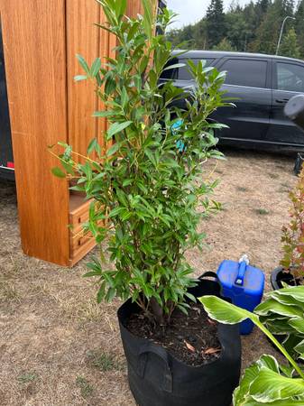 All plants are extremely healthy and acclimated to our climate, delivery is available. Prices vary from $20-$45. All 10 English Laurels $400) wholesale prices!! Text or call me (360)808-141zero