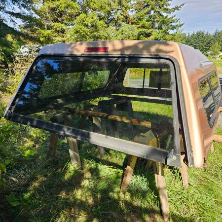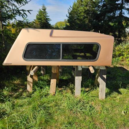 INNOVATION fiberglass camper shell for a 6.5 foot bed, width:73", length: 83" two sliding glass windows, carpeted inside