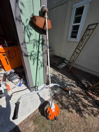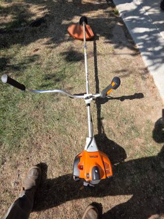 Like new heavy-duty trimmer, great for cutting wild growth or other thick brush. Bike-handle design provides more comfort....
