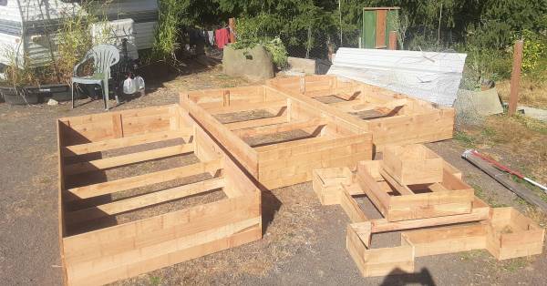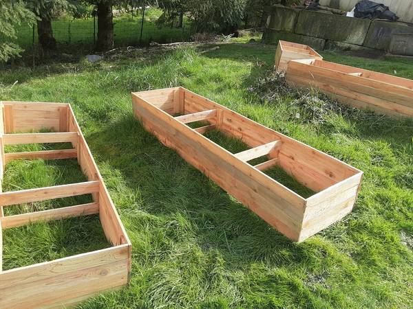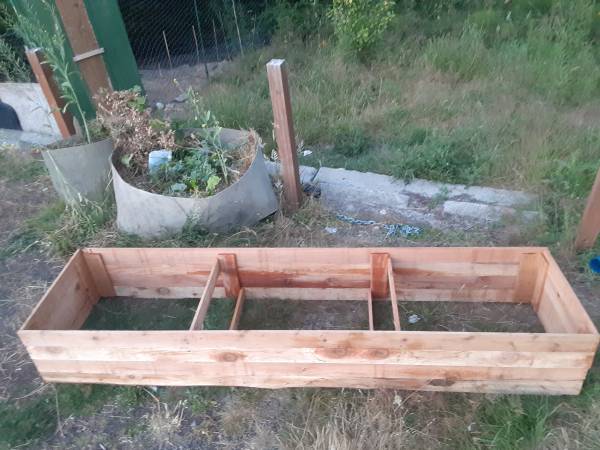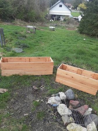 It's never too late to start a garden! Some of the best produce our area has to offer (carrots, rutabagas, kale, collards, beets) are all better once there is a little chill in the air, even frost - the plants put out more sugar to keep from freezing! Beyond that, add beauty and function to your outdoor spaces with these hand-crafted locally-made planter boxes. These boxes are assembled from natural untreated cedar fence board with resins that resist decay. Their light yet sturdy nature, put together simply with no bells or whistles, with dipped or galvanized screws rather than flimsy pins, makes them easy to carry into place or to pick up and move when if you ever need to relocate your garden. They are built as panels so they can be dismantled and moved in a small vehicle, then reassembled with Philips head screws. They lack a bottom but that's because they're designed to sit directly on the grass - adding the dirt kills any plants beneath, leaving root channels open for the stuff you plant. (If you want me to add a bottom, I can, though that will be extra I can calculate based on the size.)
