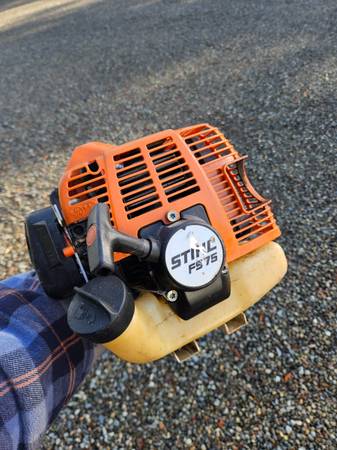 Stihl FS 75 pro trimmer, good condition, runs well, is set up with plastic blades instead of line. Could use new blades. $50. Located in Port Ludlow.