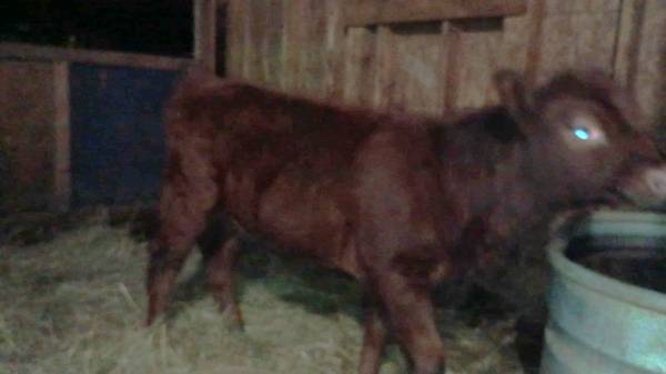 Red Angus Heifer Calf 5 months old, cow died, so she was bottle raised on whole milk. asking $1500.