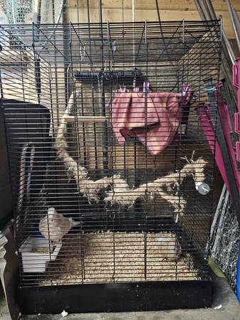 Mated pair of tangerine (male) & tangerine pearl (female) ringneck doves. Unrelated, currently sitting on an egg. Male is extremely sweet, female is a bit timid, but still relatively easy to handle & catch with some patience/ slow steady movements. Their cage/ nest box/ bowls/ & perches all come with them as well as some food & bird grit & oyster shell. They are "proven breeders" as I have 3 of their young.