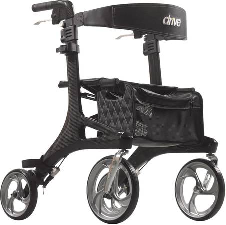 Drive Medical Lightweight Carbon Fiber RTL10266CF Nitro Elite CF Foldable Rollator Walker with Seat, Black