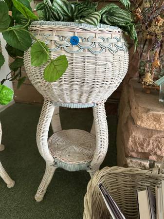 Two each wicker plant holders 20 for the pair. Good shape, artificial plant included if you want or not.
