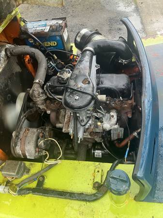 Toyota forklift. Will lift 3200 lb. 2 speed transmission with clutch. Brakes work and it has pneumatic tires so it will go in the gravel. Machine weighs approx. 8000 lbs.