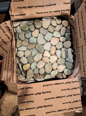 Natural river rock bath tiles. 3 boxes 12" X 12". 12 in each box. So, 36 Sq. Ft. total. Great for backsplash or shower floor.