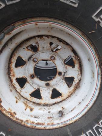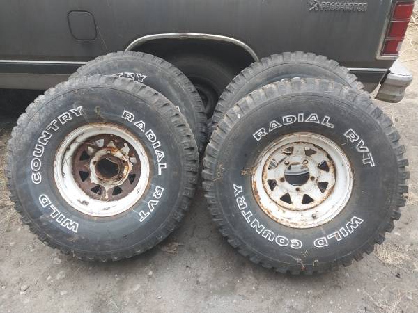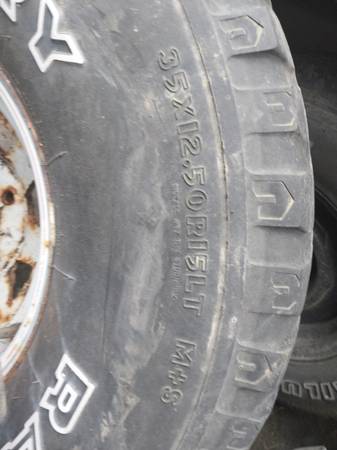 I have a set of 4 mud tires on spoke wheels. Tires hold air. On 15x10 spoke wheels 5 on 51/2 bolt pattern. As is. Any questions please text or call me. Thanks