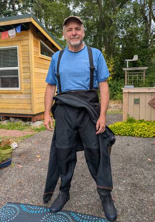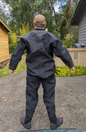 Aeris men's drysuit for scuba diving, XL, size 11 boots, front zip. All seals, zipper, inlet, and dump valve work. Fits me, 5'11". Probably good for anyone from 5'9" to 6'. Try on in PT before buying!