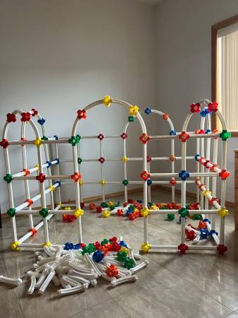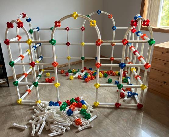 No Ends Double Set. Includes multi color connectors, hinged, curved and multi length straight pieces. Limitless play and construction options. Breaks aparts and puts together easily. Fun for all...
