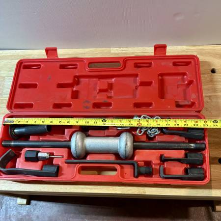 Slide hammer set is constructed with heat treated steel for extra strength and durability for all your pounding and pulling operations