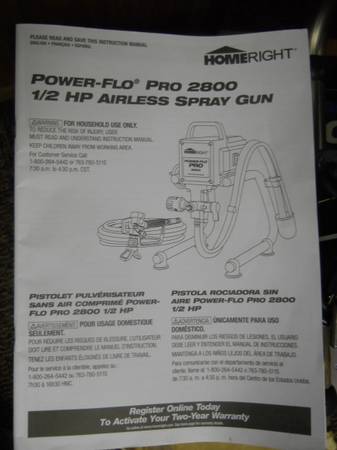 HOMERIGHT POWER-FLO PRO 2800 1/2 HP AIRLESS SPRAY GUN. Brand New, never used, open box. Paid $279.00, asking $250.00.